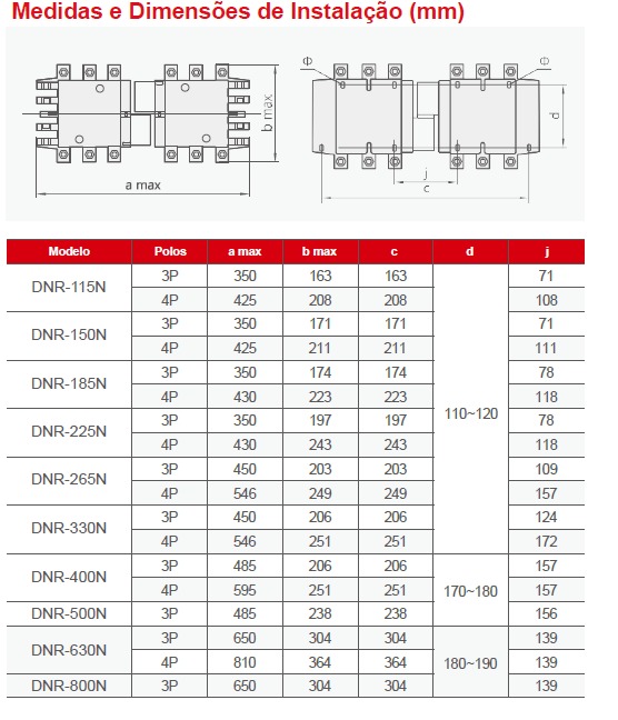 Contator tripolar 800a com intertravamento mecanico DNR-800-3N com barramento
